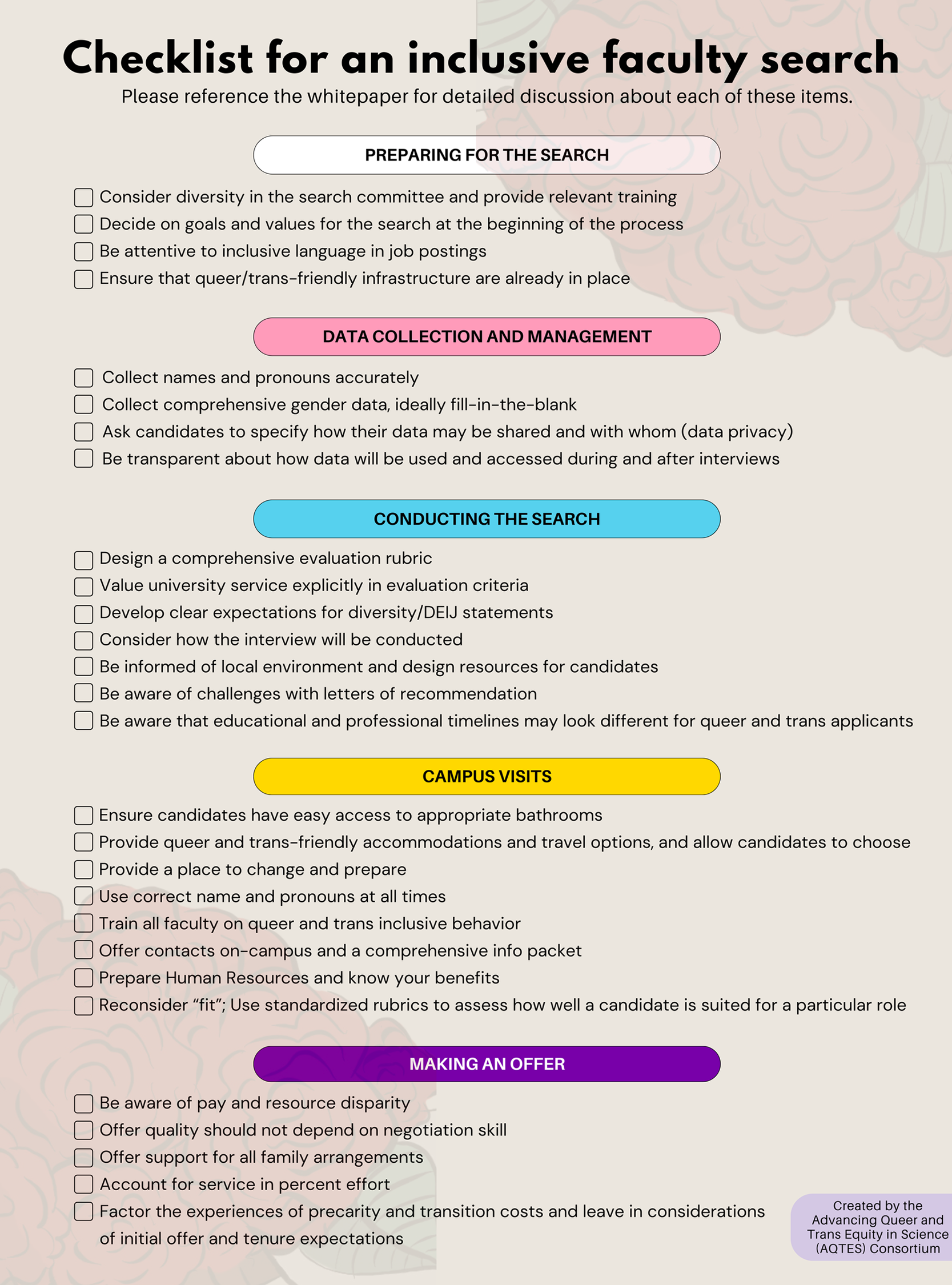 AQTES is an international working group of queer and trans scientists aiming to improve working conditions and career outcomes for queer and trans scientists working in academic and non-profit laboratories. We write about the needs of queer and trans scientists from our own experiences in the sciences. We welcome scientists at all career levels who are actively engaged in research at academic or non-profit institutions in some capacity.